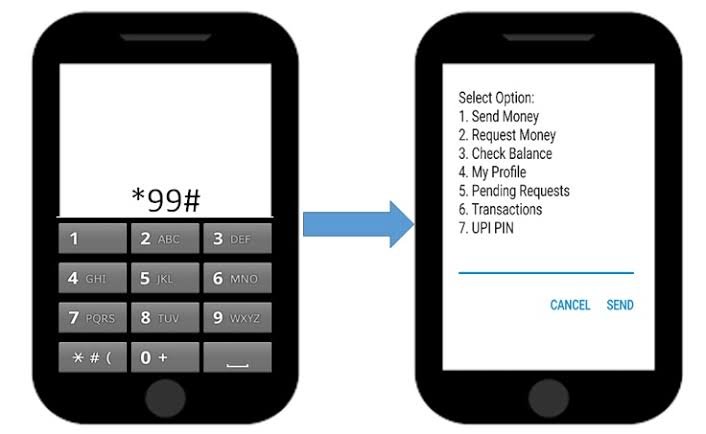 मोबाइल पर धीमे या बिना इंटरनेट कनेक्शन की स्थिति में भी हम गैर-इंटरनेट आधारित मोबाइल डायलिंग विकल्प *99# (जिसे USSD 2.0 के रूप में जाना जाता है) का इस्तेमाल कर UPI पेमेंट कर सकते है।